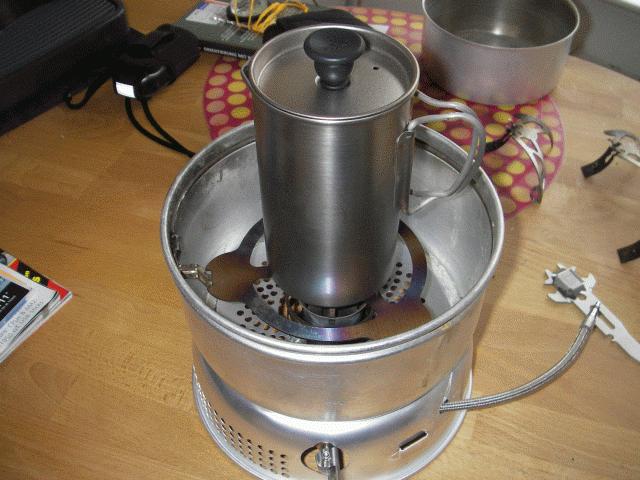 Der Nova ist ein toller Kocher, das Trangiasystem ebenso. Will man beides zusammenbringen, bietet sich als erstes das Original-Einbauset an. Das ist aber ziemlich wackelig, lässt das Vorheizfliess ungeschützt, platziert den Kocher viel zu tief im Trangia-Windschutz und ist darum einfach zu teuer für das Gebotene.