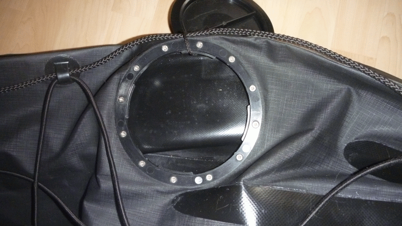 Leider sind aber die Versionen ohne Dichtringe - wer hätte es gedacht - genau das: nicht ganz dicht. Aber Abhilfe naht. Inspiriert von den Packluken der Firma Feathercraft habe ich in den unten stehenden Bildern eine mögliche Lösung mal an meinem Narak durchexerziert. Der Zeit-Aufwand pro Luke liegt unter 10 Minuten, der finanzielle Aufwand misst sich am Verhandlungsgeschick gegenüber dem Händler des Vertrauens :-)