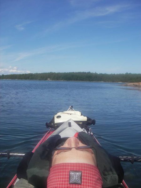 Spant 2 und 4 sind im unteren Bereich jetzt mit Rohrisolierung umhüllt, so ist es beim Ablegen der Oberschenkel wesentlich angenehmer. Die obere Stange zwischen Spant 3 und 4 (welche die Spritzdecke so gut stabilisiert, daß ich da sogar eine volle Deckstasche oben drauf packen kann) habe ich hinten um ca. 3 cm gekürzt. Jetzt ragt sie nicht mehr in den Sitzlukenbereich und sucht Kontakt mit meinen Schienbeinen.