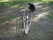 Das letzte Stück der Steuerleinen vor den Fußschienen habe ich durch eine Steuerverstellung von Prijon ersetzt, dadurch kann man jetzt mit einem Griff die Länge der Steuerseile anpassen. Des weiteren habe ich die originalen Pedalen entfernt und durch einen richtigen Stemmbock ersetzt. So findet jetzt auch die beste Ehefrau von allen mit ihrem 165er Gardemass vernünftigen Halt. Außerdem sind die Aufnahmen der Original-Pedalschienen nun frei, um mal mit zusätzlichen Versteifungen zu experimentieren.